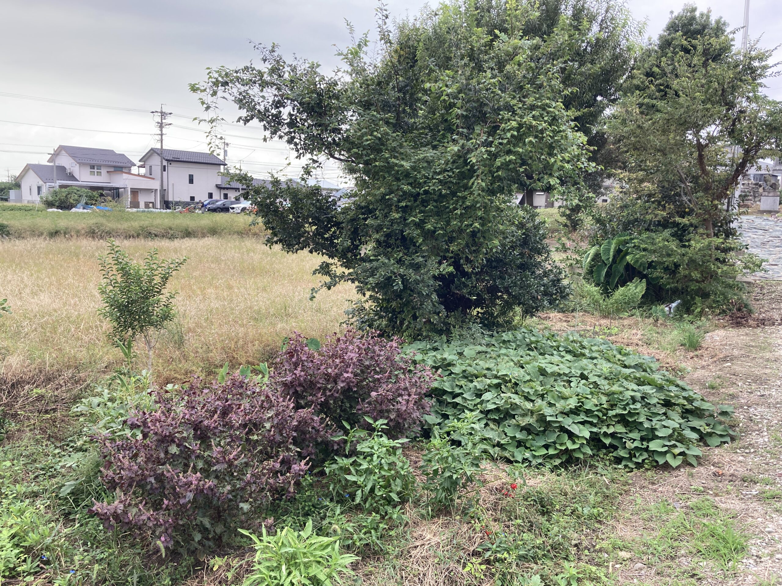 この畑には前の人が植えていたのか、勝手に赤紫蘇が生えてきています。赤紫蘇が問題無く生えてくるのであれば、大葉も問題無く育つと思います。
