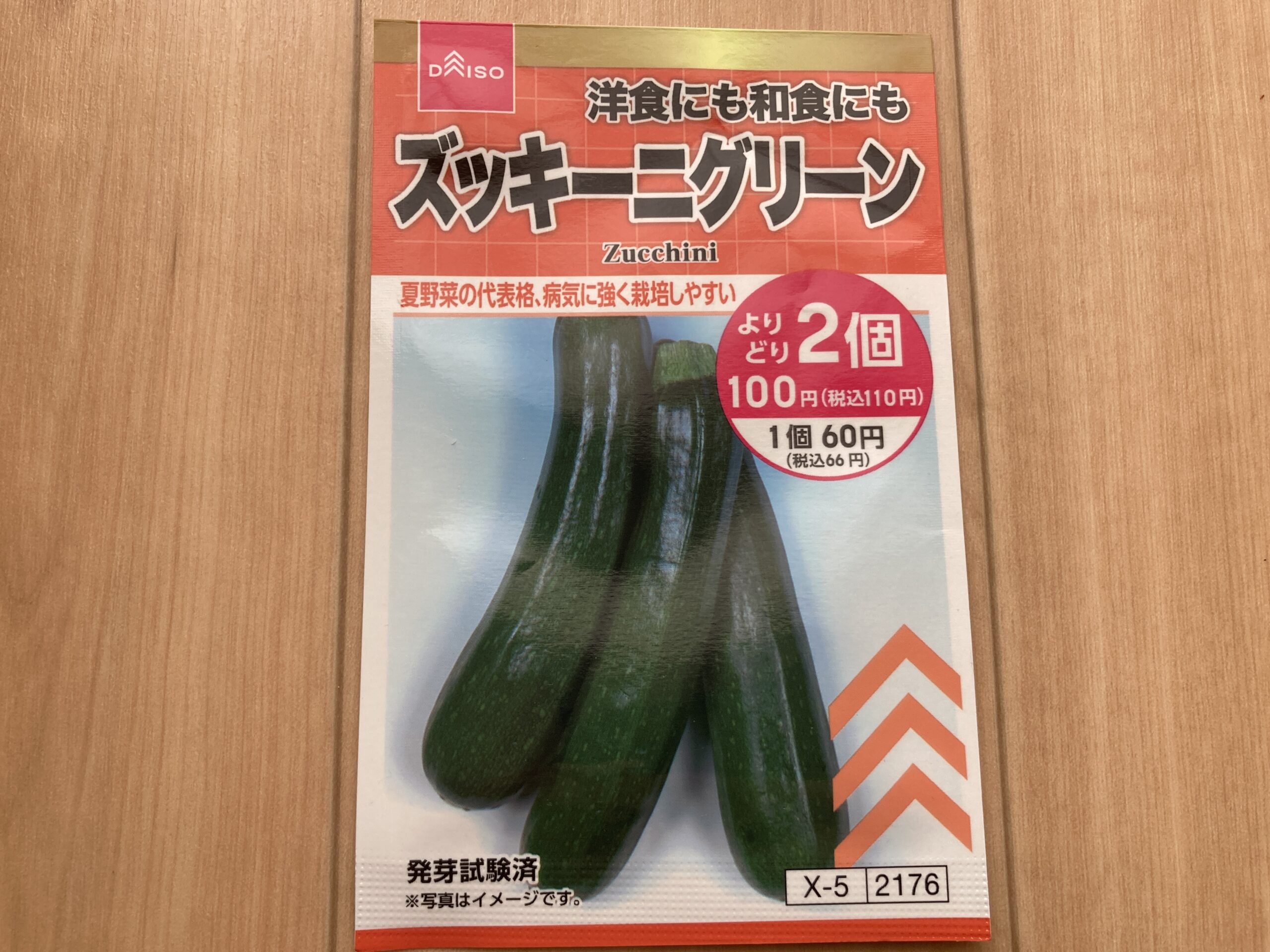 今年はダイソーの50円の種でズッキーニを育てていきます。品種は「青馬」です。